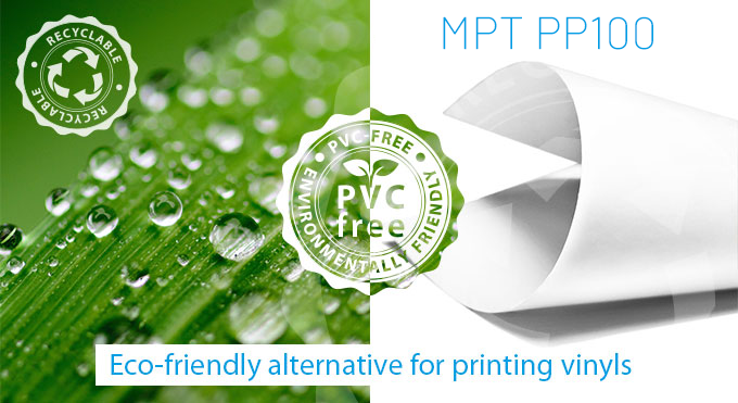 Ikonos Profiflex MPT PP100. The top quality printing product for large format inkjets. Its biaxially oriented polypropylene (BOPP) structure is a signature of high quality. It is white, matt, 100 micrometer thick modern printing substrate. The material is recyclable and 100% PVC-free. Above all, it has stunning printing properties.